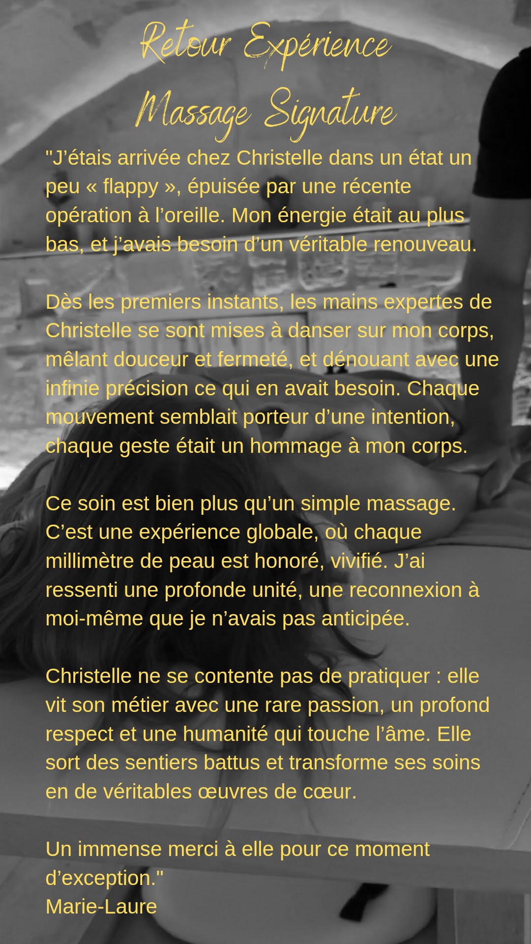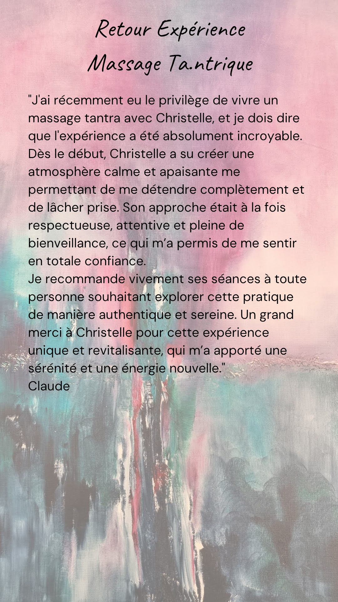 Recevoir un massage, c’est t’offrir un espace sacré. Un moment pour te déposer, ressentir, vibrer le plaisir d'être en vie. Je t’accompagne avec authenticité, présence, amour et bienveillance, pour te célébrer pleinement, dans ton corps, ton cœur et ton essence.