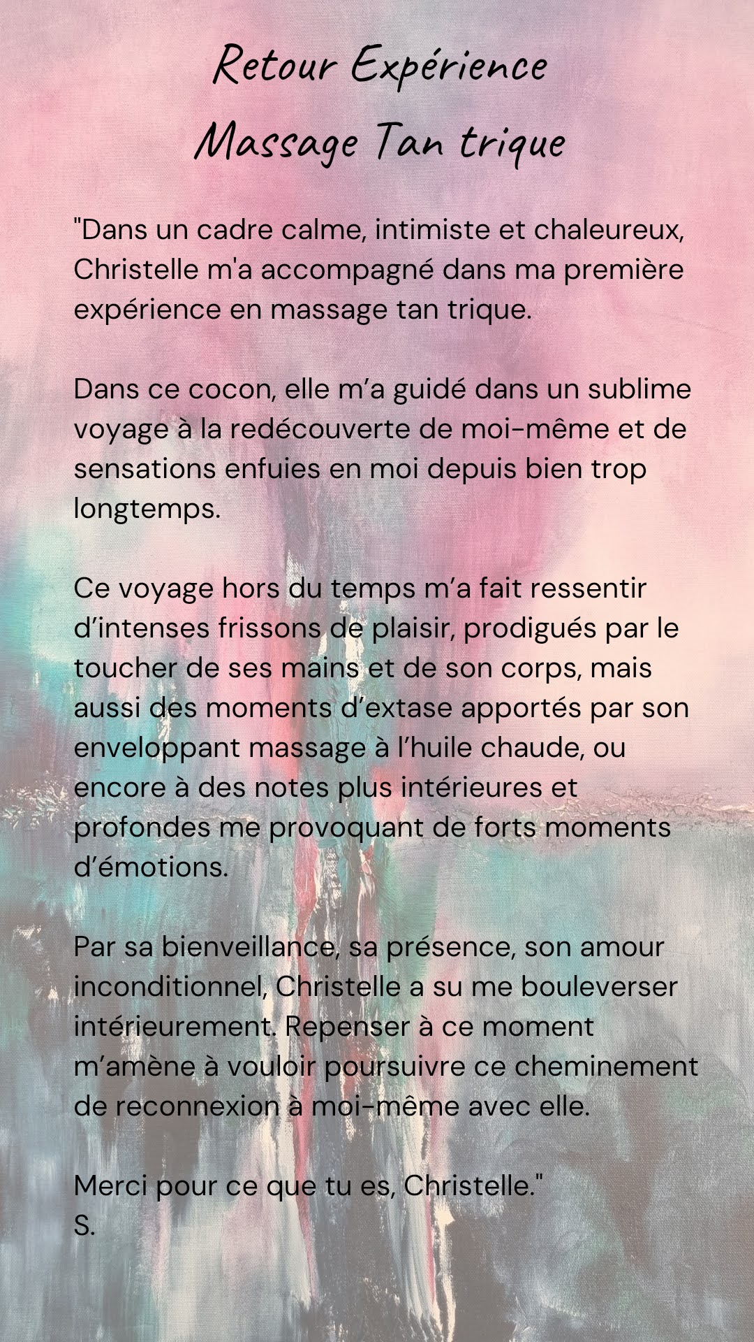 Dans un cadre clair, sécurisant et respectueux, fondé sur la confiance et le consentement, choisis l’expérience la plus juste pour toi, selon ton envie et ton cheminement personnel.